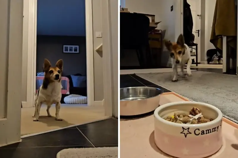 Cammy has a large following on TikTok, where Jess regularly posts about her elderly pet to her account @walkieswithcammy, and one recent video has shown the importance of routine when it comes to dinner time.