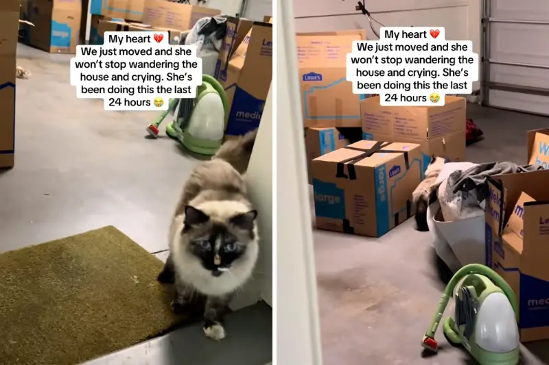 “My heart,” reads layover text in the clip. “We just moved and she won’t stop wandering the house and crying. She’s been doing this the last 24 hours.” The caption adds: “She’s thinks we are both lost.”
