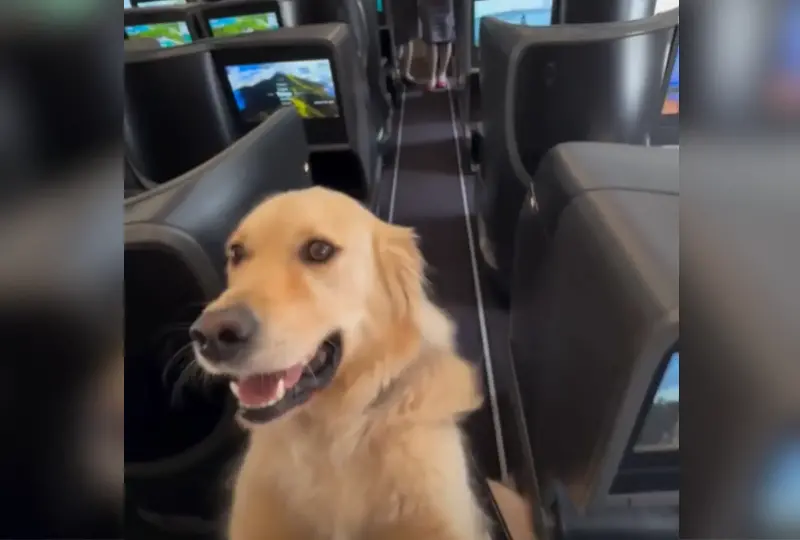 A golden retriever’s pure joy while flying business class has captured hearts on social media, after a video of the moment went viral.