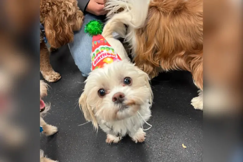When a doggy daycare celebrated a Shih Tzu’s “birthday” with hats and a song, her owners were amused—and a little confused—because the pup’s real birthday wasn’t for months.