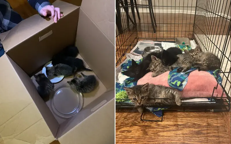 “There was absolutely no way I was going to leave them there, so I loaded the box into the warm car, and we called some of our friends who are cat owners to figure out what we should do.”