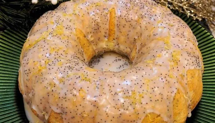 9. Once the cake has cooled, drizzle lemon glaze evenly over the top. Sprinkle with more poppy seeds and lemon zest. Let the glaze set before slicing.