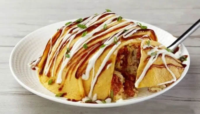A fusion of Filipino and Japanese flavors, this dish is the Japanese version of an omelet that features savory Purefoods Star Corned Beef stir-fried with veggies and rice and wrapped in a soft, crepe-like omelet.