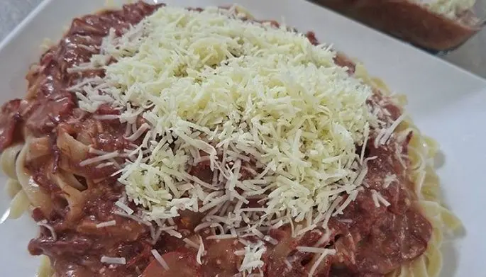 Chef Jackie Ang Po has shown that it can be made into a creative pasta that can feed a lot of people. Learning it from a member of her staff at Fleur de Lys Patisserie and Café, she has perfected her Corned Beef Spaghetti recipe using Purefoods Corned Beef. She incorporated some unique ideas into the recipe, since her staff told her that in the province, they use banana ketchup instead of tomato sauce, and she had condensada in the house so she replaced any sugar requirement with it.
