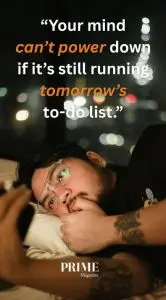 💬 “Your mind can’t power down if it’s still running tomorrow’s to-do list.”