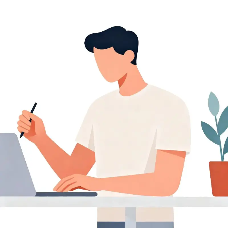 Illustration of a person working on a laptop with a stylus.