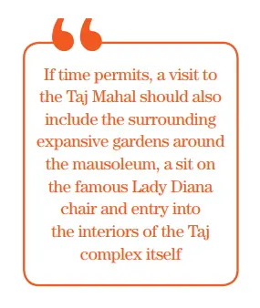 Visiting at sunrise or sunset reveals subtle colour changes across the marble surface. A river cruise along the Yamuna offers a striking perspective, while nearby gardens and historic structures provide further context.
