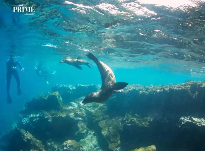 Sea Lions Play with Snorkelers Galapagos Island Tour