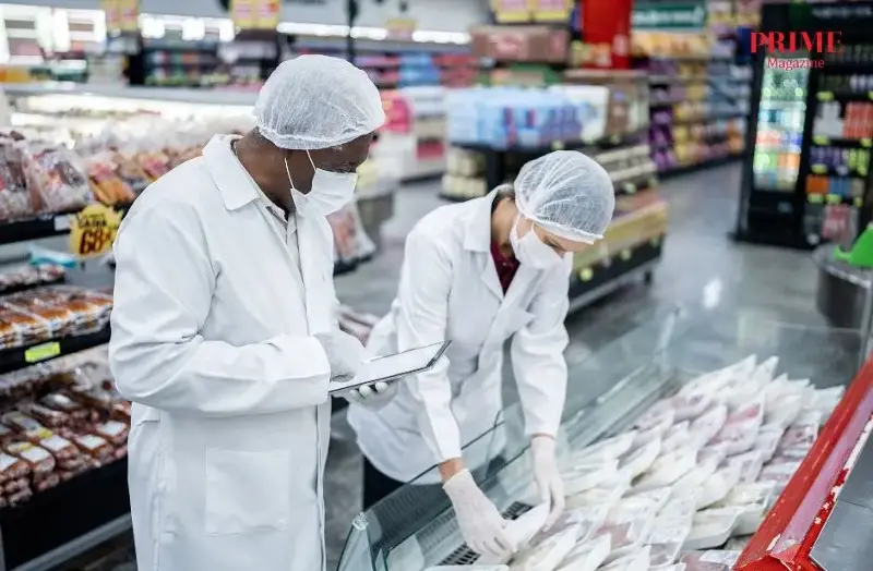 Inspectors analyzing the food in the supermarket