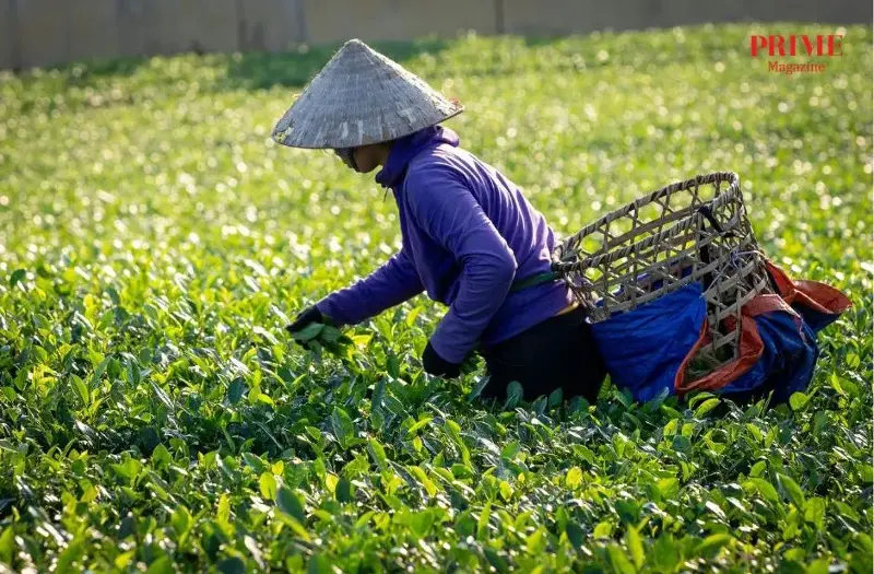 Vietnamese Tea Field Harvesting Scene