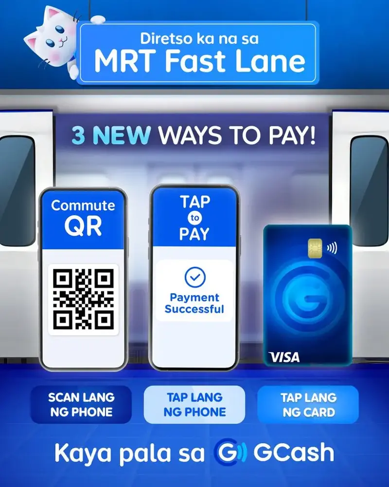 Tap your GCash Visa Card – Spotty signal or low battery? No problem — you can still breeze through MRT3 with your GCash Visa Card. Just tap in and out like a regular ticket, no need to queue at station cashiers or machines to load. It’s linked to your GCash account, so you can easily fund it anytime via bank transfer or GCash cash-in points — including those right in MRT stations.
