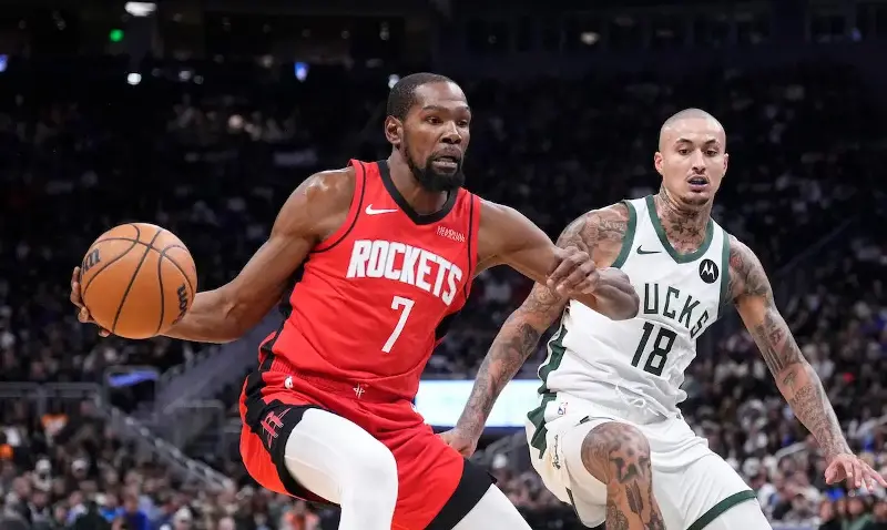 Kevin Durant paired 31 points with 7 assists and took over down the stretch as the Houston Rockets rallied from a 14-point deficit and defeated the host Milwaukee Bucks, 122-115, on Sunday, November 9 (Monday, November 10, Manila time).
