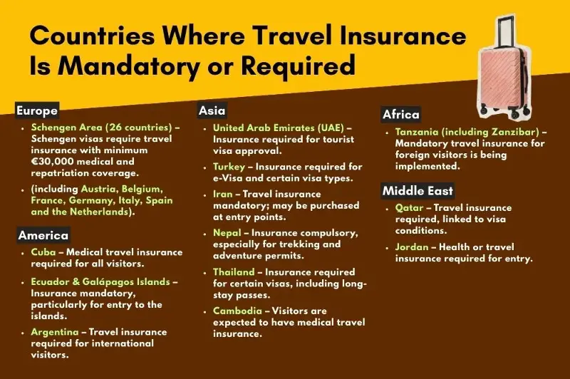 And, some countries now require proof of travel protection for visa or entry, particularly for destinations with high medical costs or health risks. While travel insurance is not mandatory everywhere, it remains a responsible and essential precaution.