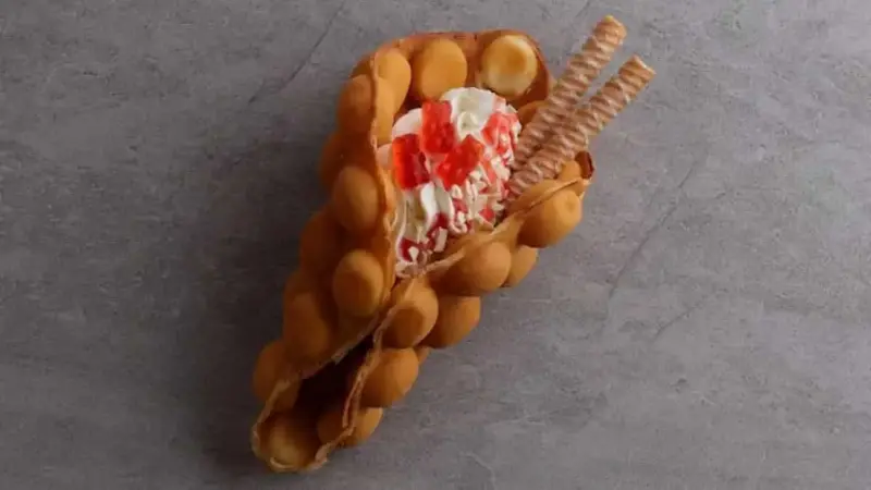 Bubble egg waffles or Gai daan jai originated in the 1950s as a cheap snack, prepared to maximise egg and flour for texture. The unique bubble shape is derived from a specialised iron mould, and vendors often cook them fresh. It’s more than just a treat here; it’s part of Hong Kong’s street food culture, mixing visual appeal, crunch, chew, and sweet satisfaction in every bite. These waffles highlight Hong Kong’s love for creative street food with bold textures.