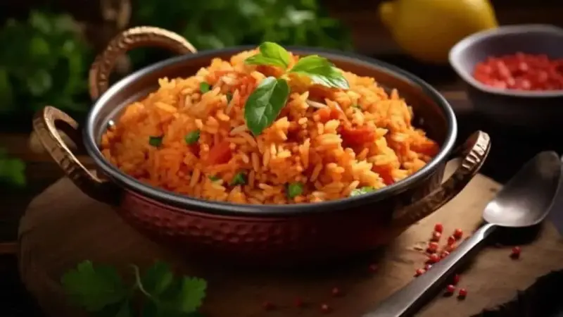 Tomato rice is for days when you want something chatpata but something more substantial than a snack or chaat. Rice cooked with a masala of tomatoes, onions, ginger-garlic, green chillies, and some basic kitchen spices, then garnished with curry and coriander leaves. The tomatoes deliver spice and a little sweetness, whereas the spices bring warmth without burning your taste buds. It is a complete meal on its own, but if you want to make it more delectable, add a side of papad and a bowl of dahi with it. Light, one-pot, and full of flavour, it is a perfect weeknight dinner.