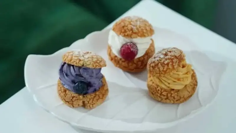 Choux rings offer a more decorative and festive shape that is ideal for a formal tea or a holiday dessert table. Add a teaspoon of blue poppy seeds to your choux dough before piping it into neat, concentric circles. Air fry these at 180 degrees Celsius for eighteen minutes, ensuring they are completely dry inside before removing them from the heat. Slice each ring in half horizontally and fill the bottom section with a sharp, homemade lemon curd made from fresh citrus and eggs. Top the curd with a layer of stiffly whipped cream before replacing the top half of the ring. The poppy seeds provide a subtle, earthy crunch that complements the zesty filling, making this a refreshing and elegant choice for a spring afternoon.