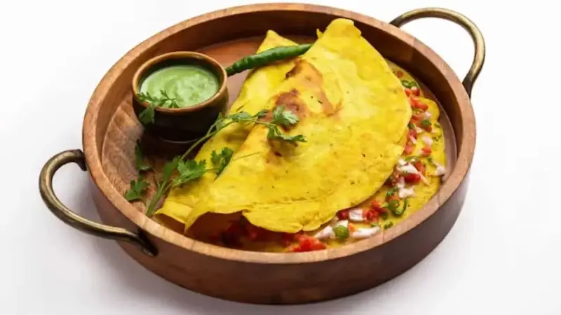 This chilla changes simple toor dal into a crispy breakfast that tastes a bit nutty with a soft centre. The batter is prepared with soaked toor dal, which is blended with some ginger, green chillies, and a pinch of ajwain. It spreads beautifully on a hot, sizzling tawa, making a protein-rich breakfast option. Cooked in little oil, the chilla develops crispy edges and a soft aroma. Serve it with green chutney, which elevates the taste more. Toor dal chilla is light, filling and perfect for mornings when you look for something nutritious but also full of flavour.