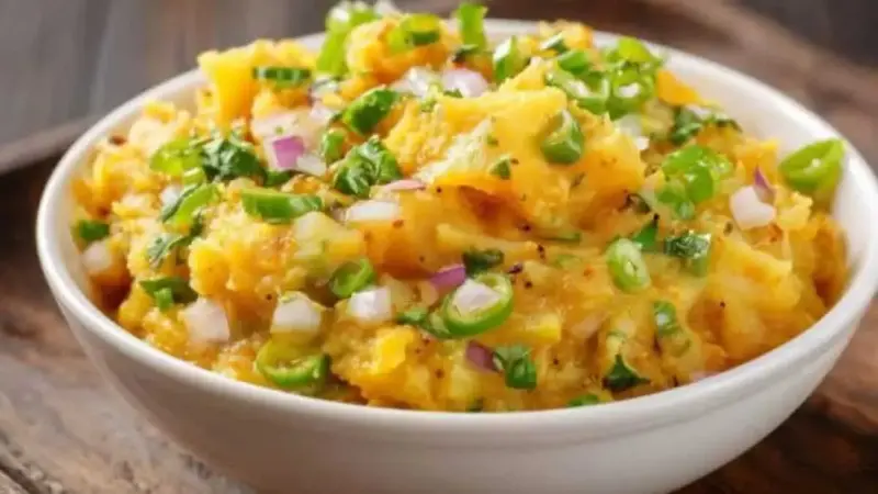 Corn bharta is prepared across several Saurashtra households during winter, and garlic forms the backbone of its flavour. Boiled kernels are lightly crushed and then cooked with onions, garlic, green chillies, haldi, and red chilli. The final texture falls between a mash and a sabzi, and it pairs well with bajra rotla, which is also common during colder months. Longer simmering helps the corn absorb the spices, and the dish suits a simple winter meal. Some people add coriander at the end, although it remains flavourful even without garnish.