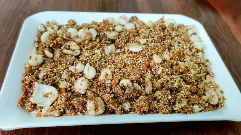 Rich, indulgent, and filled with energy, dry fruit panjiri skips the use of any type of flour completely and focuses entirely on almonds, cashews, walnuts, pistachios, and dates, everything lightly roasted in ghee and coarsely ground. Sweetened naturally with dates or jaggery powder, it has a chunky, elegant texture and a deep, nutty taste. This panjiri feels festive and is a powerhouse of nutrition, and is perfect for harsh winters when the body demands warmth as well as strength. Take a small portion of it, and you will feel energised throughout the day.