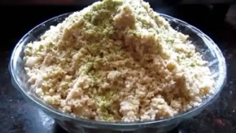 Besan panjiri has a bold, earthy, nutty flavour that feels incredibly comforting during the winter season. Gram flour is slow-roasted in ghee until it turns golden and fragrant, then mixed with jaggery, crushed nuts, and spices such as dry ginger and cardamom. The texture is slightly grainy and smooth, having a deep roasted taste that remains. Besan makes the panjiri heavy and more filling, making it best for cold days when the body requires restored energy. Besan panjiri pairs beautifully with hot milk and can also be enjoyed as a nourishing winter snack.