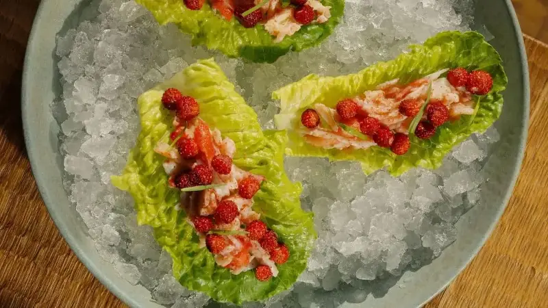 The purpose of a garnish isn’t always to remain on top of food—it can also be used as a layer to place food over. Using a leaf or two of lettuce as the base in which to place grilled chicken or seafood or using an edible potato hash ‘bowl’ to place salad inside drastically changes the way food is perceived. If making a salad of sliced citrus and beetroot, avoid tossing the arugula or baby spinach; instead make a bed of the dressed leaves and place the roundels of the root vegetable and citrus on top. Similarly, use a few wedges of lime to decorate the edges of a portion of fried shrimp or squid instead of squeezing the juice directly on them before serving.