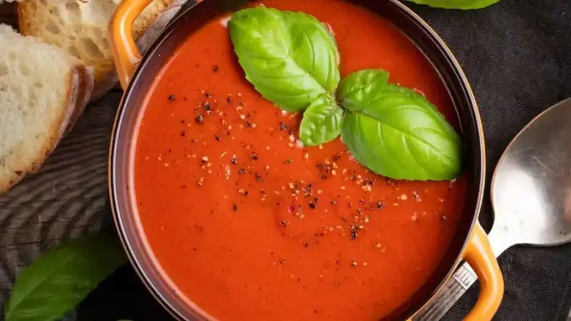 This soup delivers the essence of winter comfort in a bowl. Ripe tomatoes are roasted until they get a little smoky and then blended with garlic, basil, and a dash of fresh cream. The tangy sweetness of tomatoes when blended with the herbal freshness of basil creates a smooth, silky warmth, perfect for cold winter days. Served with a side of crunchy, crispy bread or grilled cheese, it is the best way to keep away the chill while filling your kitchen and heart with cosy, homely fragrances.