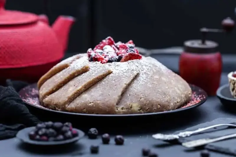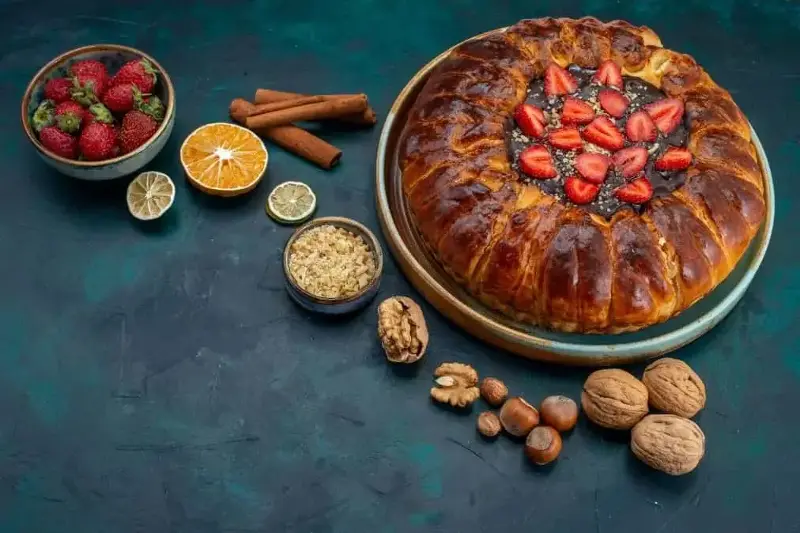 German stollen is a classic winter bread-cake hybrid that stands out immediately because of its shape and texture. It is not as heavy as a traditional plum cake and not as airy as standard sweet bread, settling somewhere between the two. The dough uses enriched ingredients that keep it supple, giving each slice a tender crumb that contrasts with the scattered dried fruits inside. The fruit pieces stay distinct rather than melting into the base, which gives the stollen a balanced bite. One of its most recognisable features is the thick dusting of sugar on top, creating a snowy appearance that has become a hallmark of German Christmas baking. Each region in Germany has its own style, ranging from denser versions to lighter, more buttery interpretations. The cake ages well, improving gradually as the flavours settle and the crumb softens.