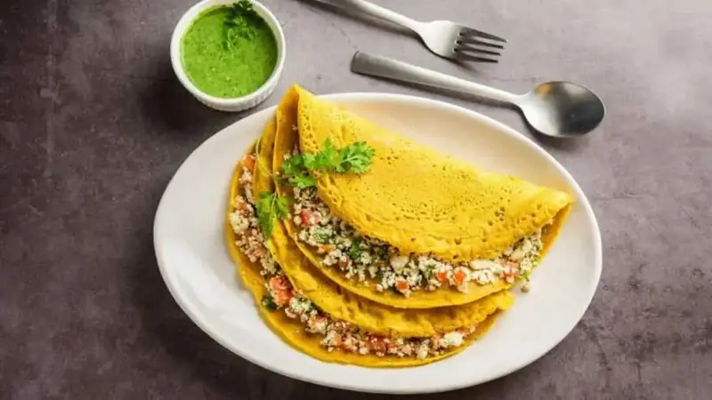 Moong dal chillas are filled with protein and are light, making them ideal for lunchboxes. Stuff the saute vegetables with a little mint chutney, it feels like a proper meal, not a settlement. Protein keeps you full for a longer duration, whereas the soft texture makes it easy to eat anywhere. These rolls do not break, do not turn soggy, and feel enjoyable even if kept at room temperature. They are particularly great if you want something fulfilling but without feeling heavy or sleepy later.