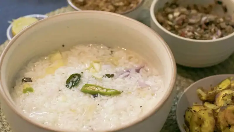 Take your freshly cooked and cooled rice and place it in a terracotta pot or a glass bowl. Add the filtered water until the rice is fully submerged. Stir in the curd and salt. Cover the container with a thin muslin cloth and leave it on your kitchen counter overnight or for about twelve hours. By morning, the water will have a slightly sour, fermented aroma. This liquid is the most nutritious part of the dish. Serve the rice and the water together, accompanied by a side of mashed potatoes or roasted vegetables for a cooling lunch that helps prevent heat exhaustion and maintains electrolyte balance.
