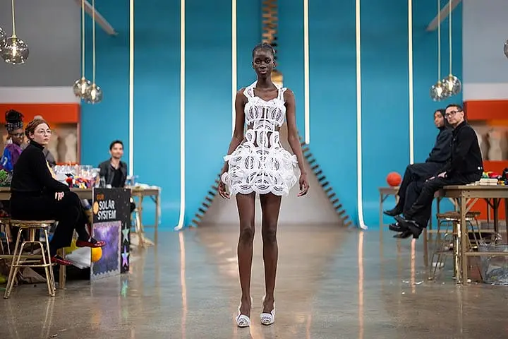 Finale – “See You on the Runway” Her finale collection was a heartfelt tribute to a childhood memory with her father. Shimmering silver pieces inspired by the villain “Mercury Man” carried themes of love, transformation and acceptance. The collection was storytelling and legacy stitched together, crowning Floresca the season’s deserving winner. S