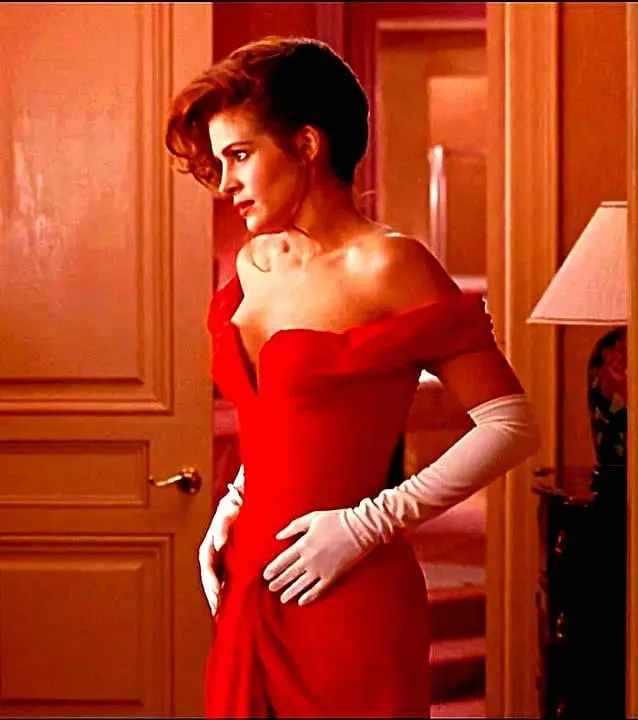 In the film, Julia Roberts’ character undergoes a transformation marked not only by romance but by growing self-worth. The red dress signals confidence and visibility, underscoring a shift in how the character is perceived and how she perceives herself.