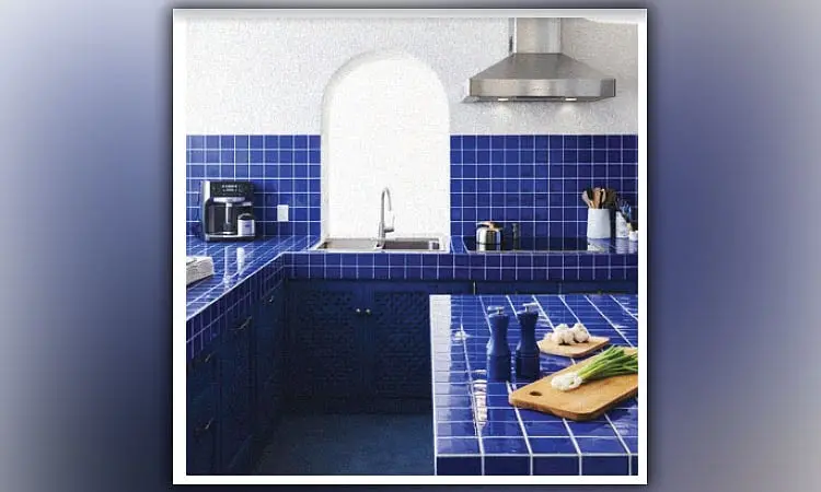 Glossy, handmade-style tiles, often in deep blues, bring movement and irregularity into the kitchen. Their slightly imperfect finish adds character, making the space feel less manufactured and more considered. It feels like living. These Moroccan-crafted zellige tiles carry that idea even further, knowing that each piece is hand-pressed and shaped, with slight variations that reflect the time, skill, and care behind their making.