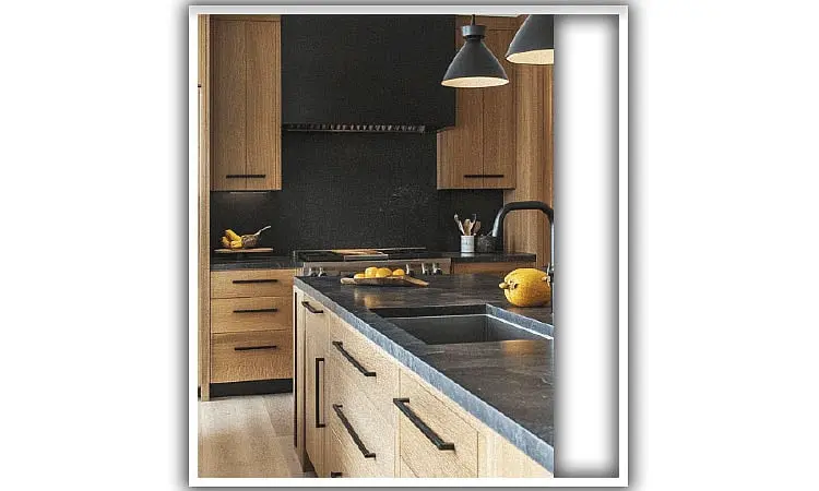 Light wood tones soften the sharpness of black accents, striking a balance between modern and warm. The result is minimal, but still inviting. Adding subtle metallic hardware or fixtures can elevate the elegance without disturbing the clean lines. S