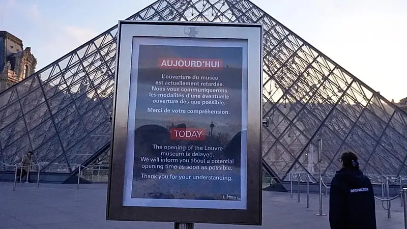 An updated notice on the Louvre's website said it was "exceptionally" closed for the day and that ticket holders would be reimbursed.