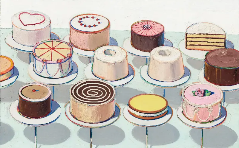 Thiebaud, who died, aged 101, in 2021, isn’t well known in this country. But, in his homeland, this former commercial artist (who once worked at Walt Disney Studios) is famous. His gloopy paintings of gum-ball and pinball machines, as well as sweetmeats, are associated with Pop art which represented, without apology, the mass-produced stuff of everyday life. At his first show, in 1961, he exhibited alongside Andy Warhol.