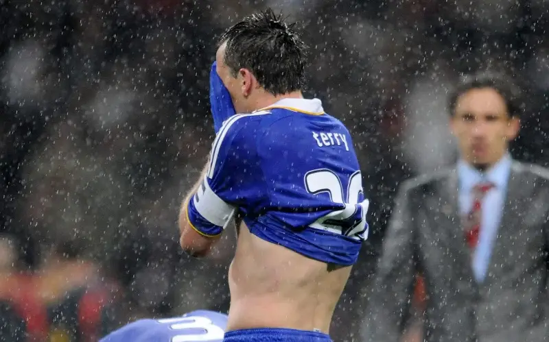 The “tear-stained” Chelsea shirt from the defeat to Manchester United in Moscow is set to go for £3,750. Terry slipped while approaching the penalty spot and his strike, which would have won the trophy had it gone in, hit the post.