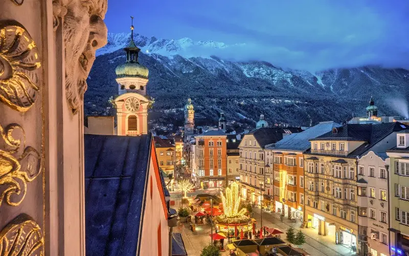 Innsbruck’s fairytale old town of medieval buildings and narrow streets is a beguiling place to visit over the Advent period, with festive illuminations and six Christmas markets from mid-November to early January. Events also include concerts, theatrical performances and parades. The city’s annual Bergisel Ski Jump, part of the Four Hills Tournament, takes place in early January.