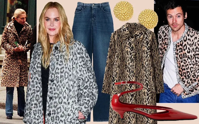 In an elongating coat silhouette, wearing a lot of leopard print can still look elegant. Black or white wide-leg trousers and simple ballet flats complete the look – the intended vibe is sleek, like Carolyn Bessette Kennedy in the 1990s, rather than fierce and fluffy à la Kat Slater in the Queen Vic.