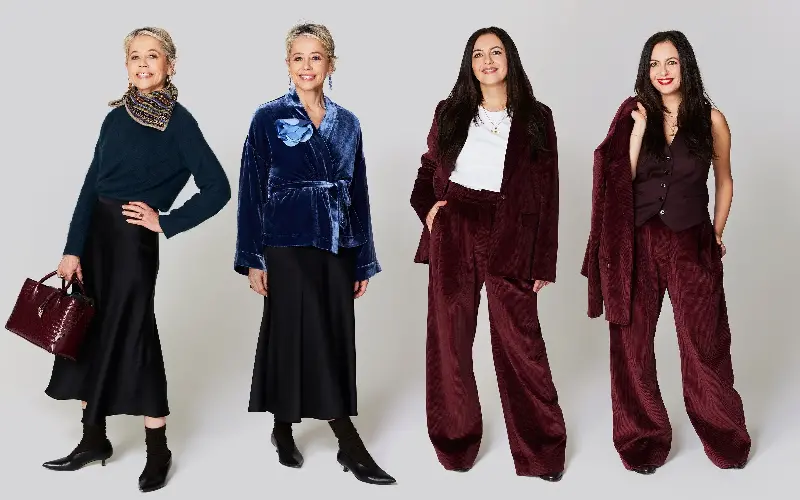 “If in doubt, wear a suit” is a very useful motto at this time of year, when you’re expected to go from school drop-off to work to a Christmas carol service to dinner – the kind of day that requires a 14-hour outfit. To transcend occasions, it’s important that the suit doesn’t look too office-y. That’s why I’ve gone for this rich burgundy cord from Kipper, the women’s suiting label founded by stylist Sarah Corbett-Winder, a woman who really gets the juggle. I swapped my daytime T-shirt for a similarly hued tailored waistcoat at sundown and added a dash of bright red lipstick. A glass of champagne is all I need to complete the look.