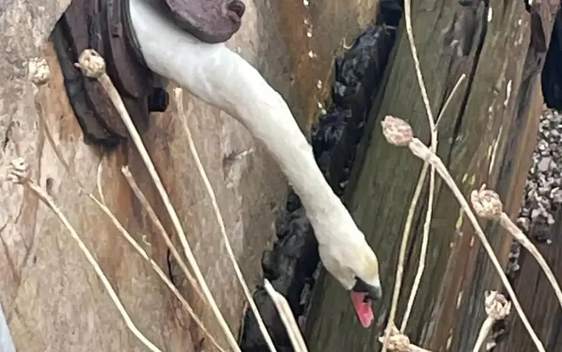 Ms Simms told The Telegraph that Sidney, accompanied by a female swan, had fled from the other male into the very narrow drainpipe “for fear of their lives”.