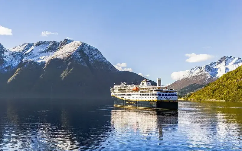 Longer stops are made at Alesund, Trondheim, Svolvaer, Hammerfest and Tromso. Activities might include a sea eagle safari, a husky sledge, a visit to a Sami settlement, and hiking and kayaking in the Norwegian fjords. It’s worth staying an extra two or three nights in Tromso and/or Bergen, and while in Kirkenes, Havila can arrange additional nights at the Snow Hotel.