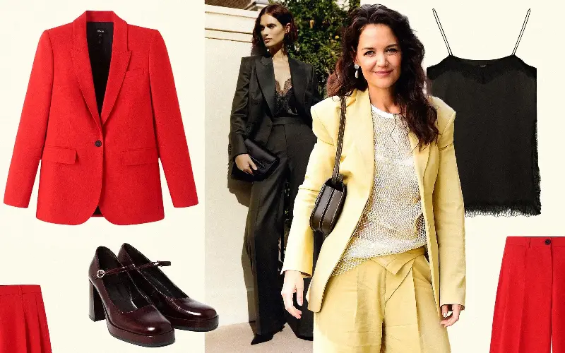 Other prominent colourful suit wearers include Julia Roberts, who wore a purple polka dot suit by Haider Ackermann for Tom Ford to the 35th Annual Gotham Film Awards in New York City on December 1 (the designer showed multiple suits on the Autumn/Winter 2026 runway, including in pastel blues and pinks too). Then there’s Katie Holmes, who has worn an array of different coloured casual suits with wide-leg trousers and blazers while out and about in Manhattan in recent years.