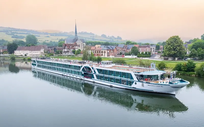 A seven-night Paris and the Heart of Normandy cruise departing on May 14, 2027, costs from £3,295pp for a standard cabin. Includes flights, a complimentary excursion in every port, drinks with meals, Wi-Fi, and tips.