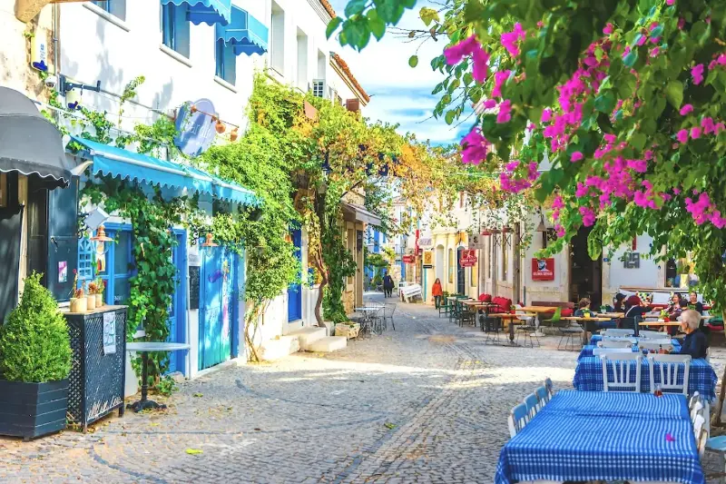 If you love bright colors and romantic scenery like in European movies, then traveling to Türkiye to Alacati village will definitely make you fall in love. Located near the city of Izmir, Alacati is a village with a strong Greek style with white-painted houses, blue windows, and winding cobblestone streets full of colorful bougainvillea.