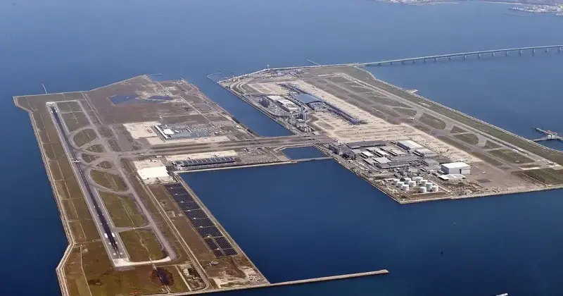 Kansai, the main airport for Osaka, Kobe, and Kyoto, is not only located on an artificial island (in fact, it is located on two adjacent artificial islands), but also 5 kilometers off the coast, about 18 meters underwater. Opened in 1994 after 7 years of construction, this airport island has one of the most spectacular runways in the world, and an equally spectacular terminal designed by the famous architect Renzo Piano