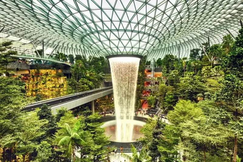 Changi Airport also has a special space called "Jewel," where visitors can admire a beautiful indoor garden with thousands of plants and the largest waterfall in the greenhouse space. These gardens not only create a relaxing, pleasant atmosphere but also help you feel the beauty of nature right in the heart of the airport.