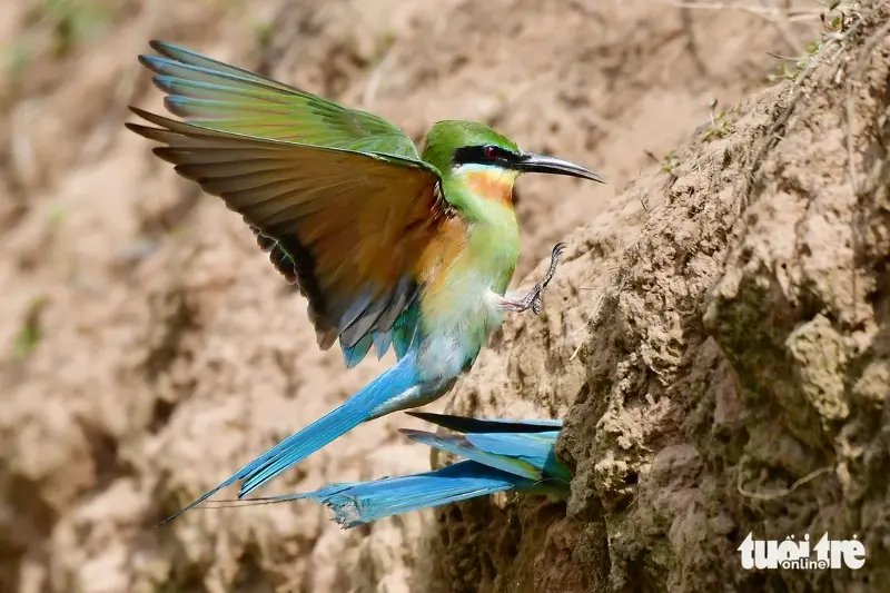 Before the rainy season begins, many bird species enter their breeding season, including the Blue-tailed Bee-eater. This is a very beautiful bird that lives only in coastal sandy areas.