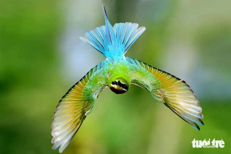 Admire the 'adorable' moments of the green-tailed bulbul in the Mekong Delta.