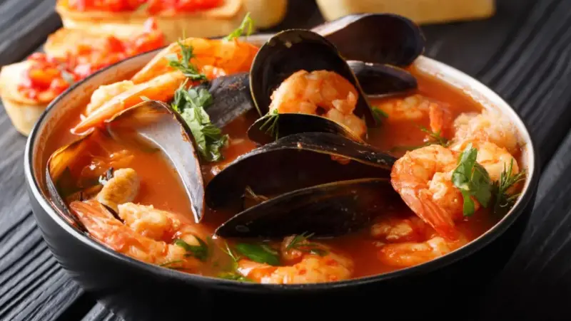 A fisherman's stew that has become a culinary icon, bouillabaisse distills classic Mediterranean flavors into a dish synonymous with the coastal city of Marseille. Saffron, olive oil, cumin, garlic, and tomatoes blend with fresh fish from the sea.