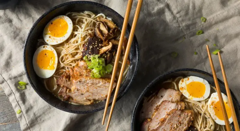 Pork bones simmered for a long time create the rich flavor of this classic ramen, with a thick broth thanks to the marrow and fat. This dish is a specialty of Fukuoka Prefecture on the southern island of Kyushu, but is now served in ramen shops throughout the country (and the world).